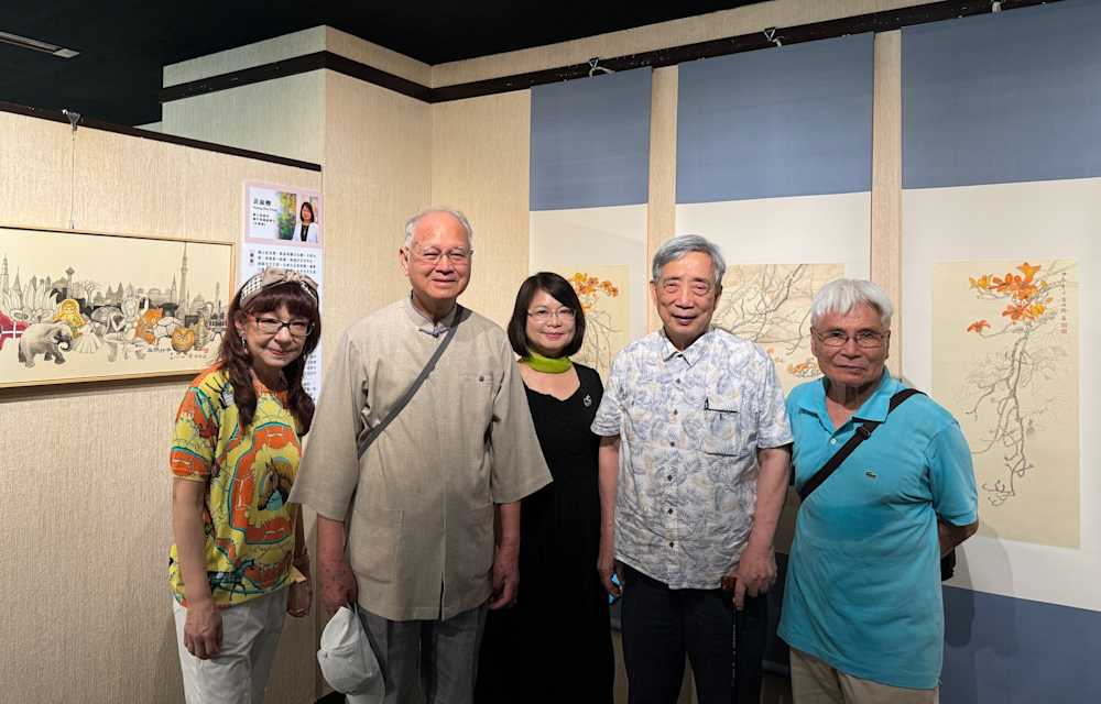 左起廖美蘭、台灣畫院名譽院長廖修平、黃淑卿(中)、前臺藝大校長黃光男、藝術家李文謙