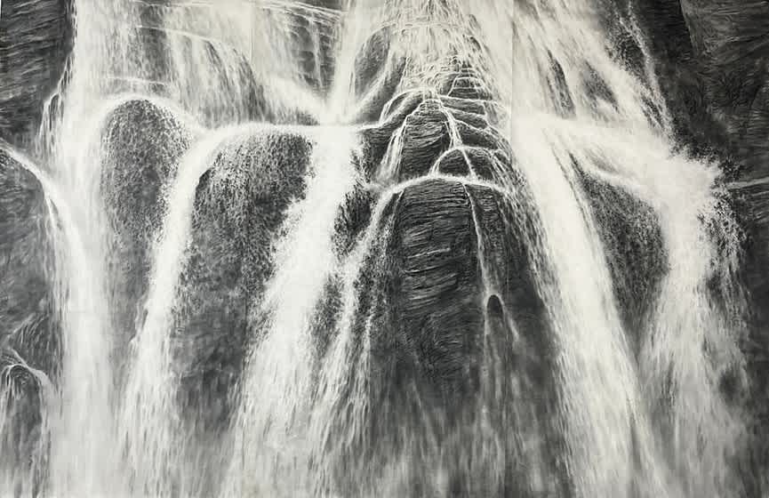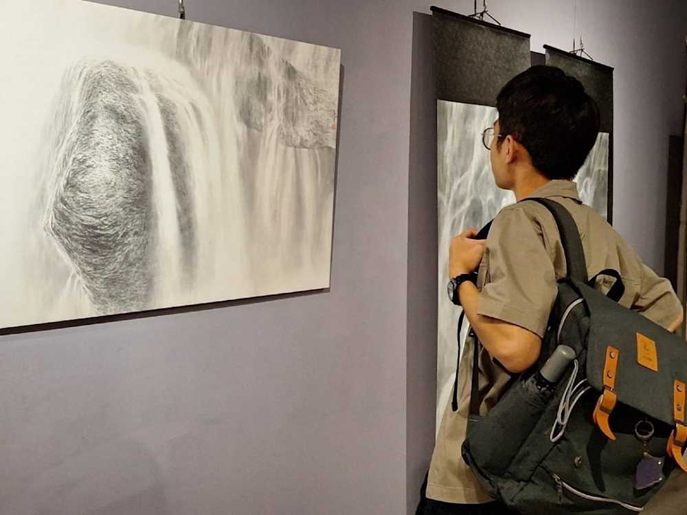 張真彥運用墨與水,展示出色彩豐富的多層次作品,並以墨分五色創造出獨特的視覺效果。