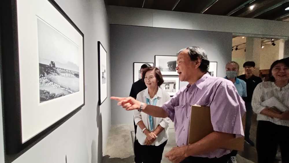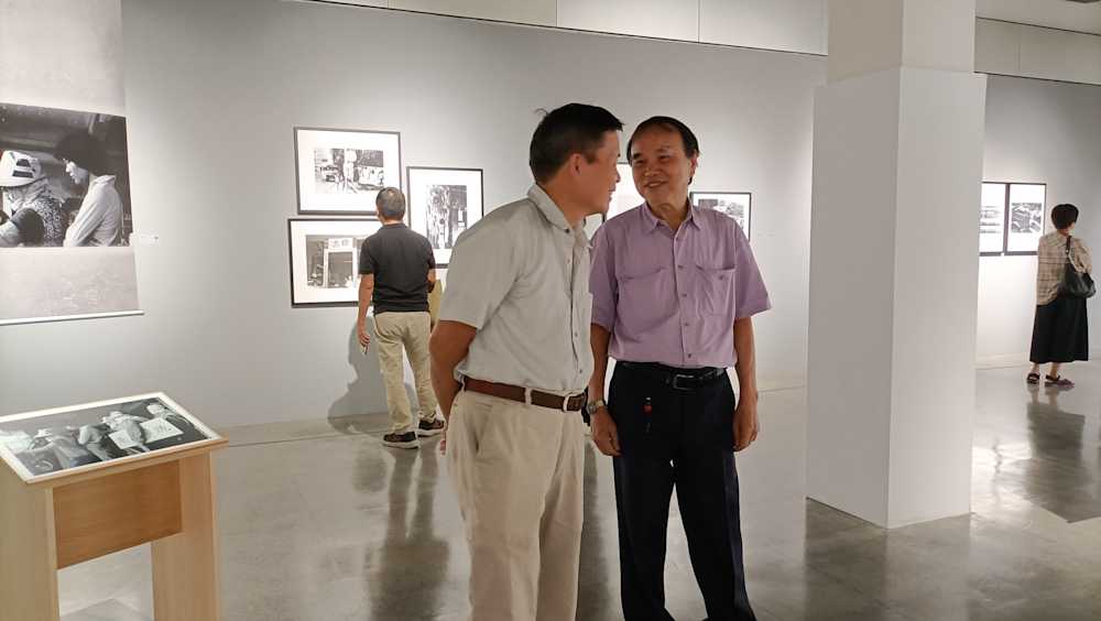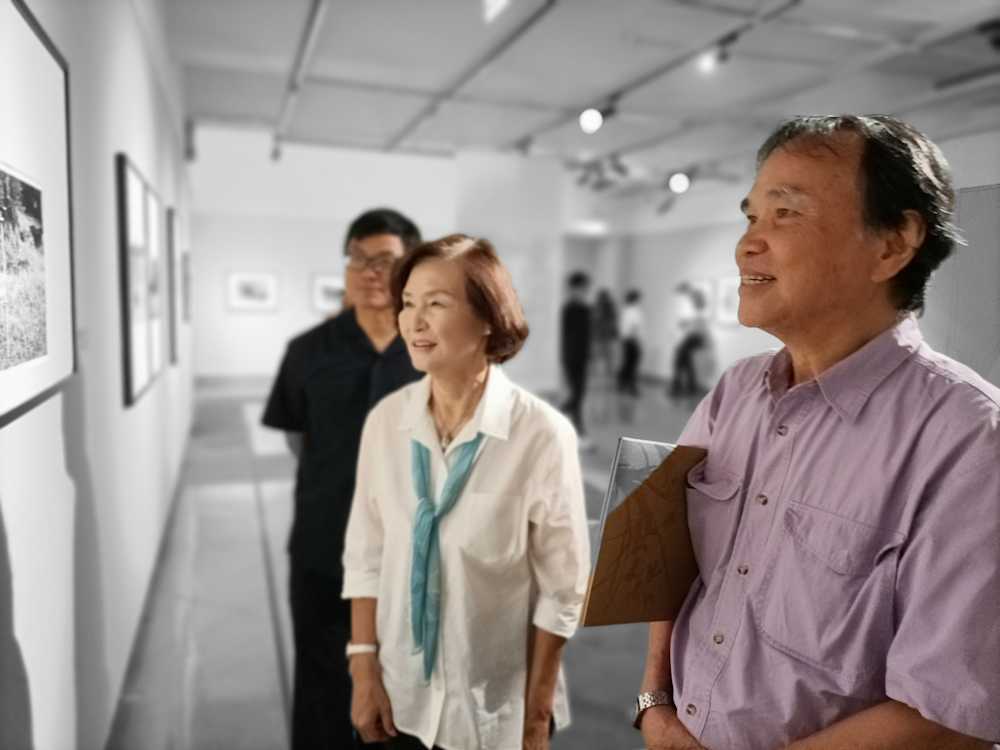 縣長林姿妙(上圖中)特別感謝兩位出身宜蘭的名家學者策劃此次展覽,稱其為一場文化盛宴,為宜蘭的人文風貌注入新的活力。 典禮結束後,縣長林姿妙仔細聆聽鐘永和對每幅作品的解說,並對其表面平淡卻蘊含深遠意境的照片讚嘆不已。